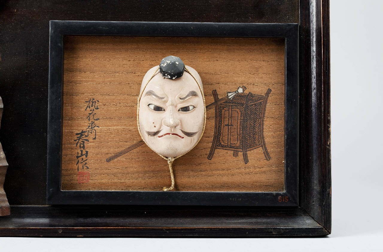 - NOTIZIE STORICO CRITICHE Questa tavoletta è incollata su un'unica tavola insieme ad altre sei tavolette (inv. G808-G809, G811-G812, G814 e una senza numero inventario).\nPer la presenza del tipico cappellino, nonché per il bastone e la cesta a mobiletto, si può suggerire che il personaggio raffigurato sia uno yamabushi, ovvero uno di quei monaci erranti di formazione buddhista, noti nel passato giapponese per la loro abilità nelle arti del combattimento.