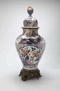 - NOTIZIE STORICO CRITICHE Esemplare di produzione delle fornaci di Arita tra la fine del XVII e l'inizio del XVIII secolo, di una tipologia destinata all'esportazione verso l'Occidente.\nLa base in bronzo è di manufattura europea.