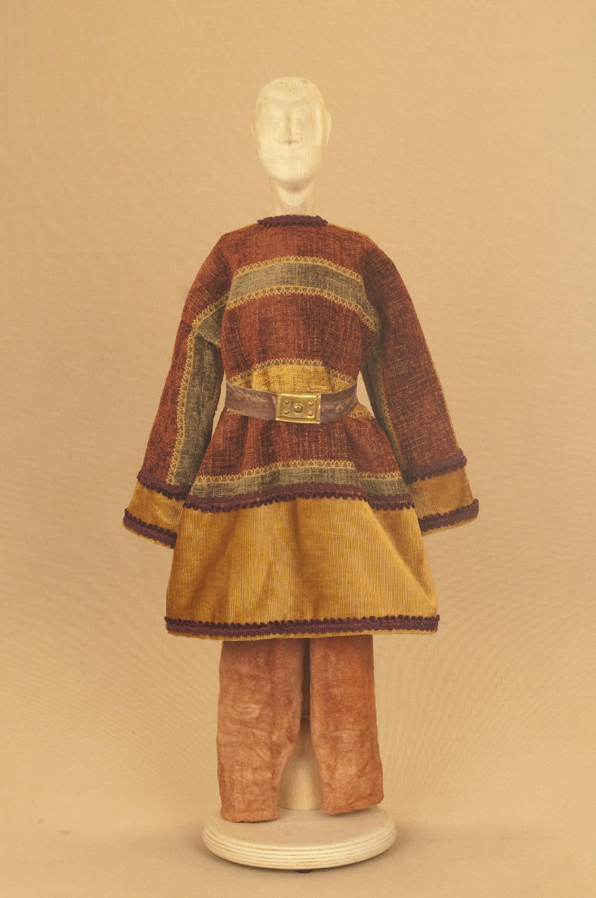 Costume da nobile medievale composto da calzabraghe, veste e cintura.