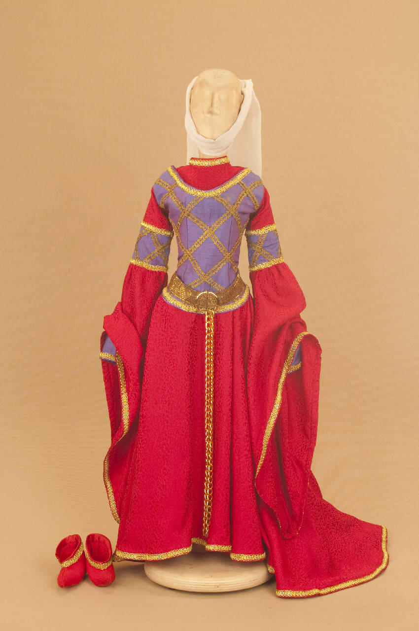 - NOTIZIE STORICO CRITICHE Il costume è stato realizzato per lo spettacolo "Macbeth" in due esemplari uguali per foggia e rifinitura, ma di diverse dimensioni per esigenze sceniche. Come altre opere di Shakespeare quali "Re Lear", "Otello", "Romeo e Giulietta", il "Macbeth" fu sempre presente nel repertorio delle Compagnie di marionette e burattini che, così, compivano la loro operazione di divulgazione in ambito popolare spostandosi di paesi in città.\nLa Carlo Colla e Figli, abbandonato il vecchio spettacolo entrato in repertorio come si rileva da un elenco delle produzioni di Carlo Colla nel Libro Mastro datato 1863-1879, ha messo in scena nel 2007 questo nuovo allestimento per lo Shakespeare Theater di Chicago, con la supervisione di Kate Bucley che ha curato la parte attorale in lingua ed i tagli al testo. Lo spettacolo, dopo la programmazione a Chicago, ha proseguito le repliche al New Victory Theater di Broadway e nel 2010 è apparso per la prima volta in Europa al Piccolo Teatro Grassi di Milano.