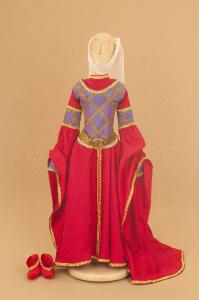 Costume da nobildonna medievale composto da corpino, veste, cintura, soggolo e scarpe.