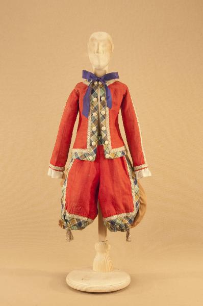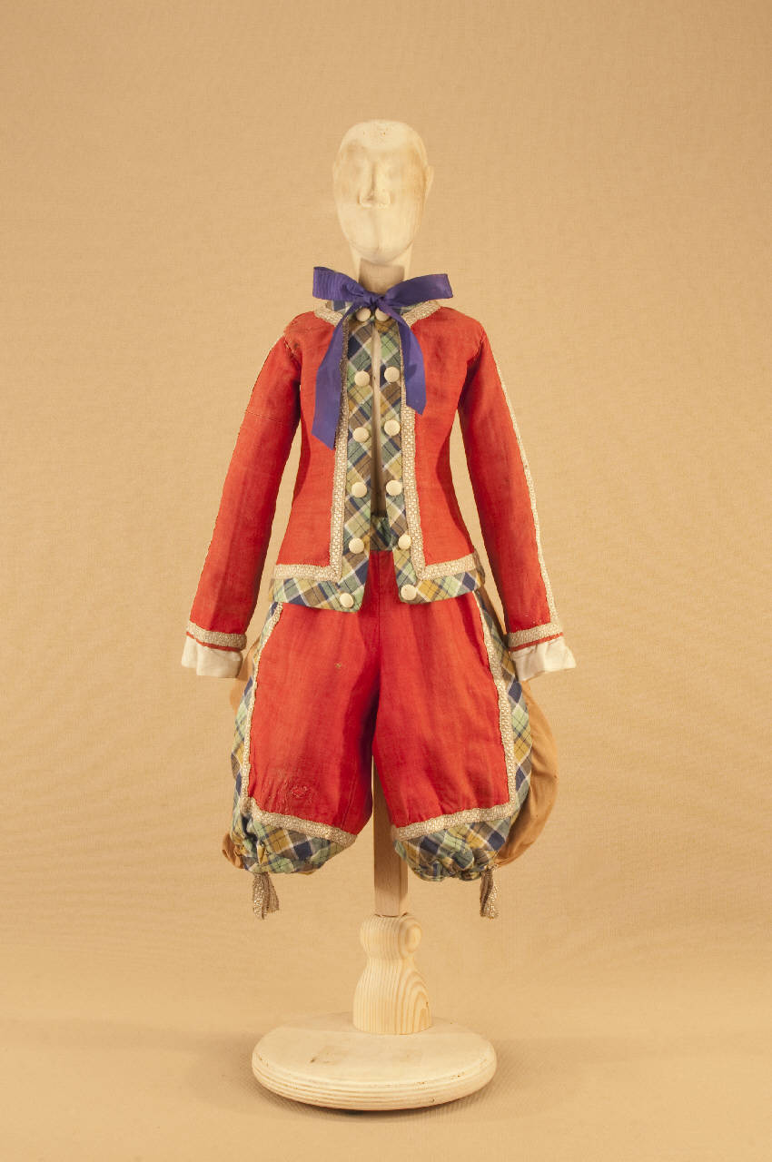 Costume da popolano di foggia seicentesca composto da calzoni, casacca e nastro per cravatta.