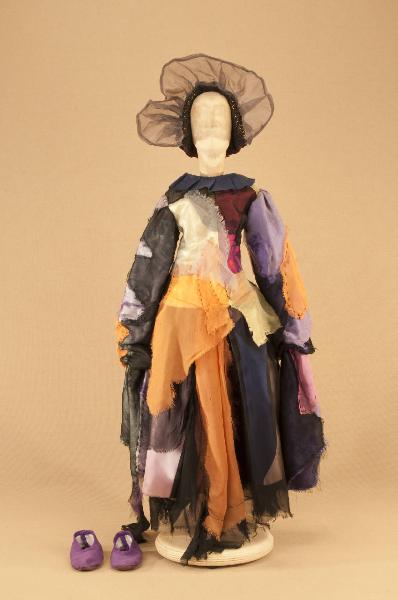 Costume fantastico femminile da strega composto da gonna, corpino, scarpe e cappello.