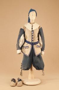 Costume da popolano di foggia seicentesca composto da calzoni, casacca, cintura, reticella e scarpe.