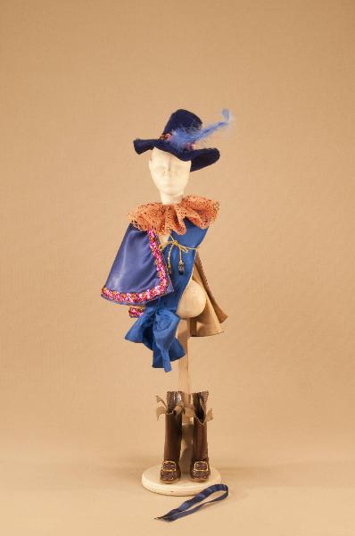 Costume fantastico composto da fascia, gorgiera, cappa, nastro per la coda, stivali e cappello.