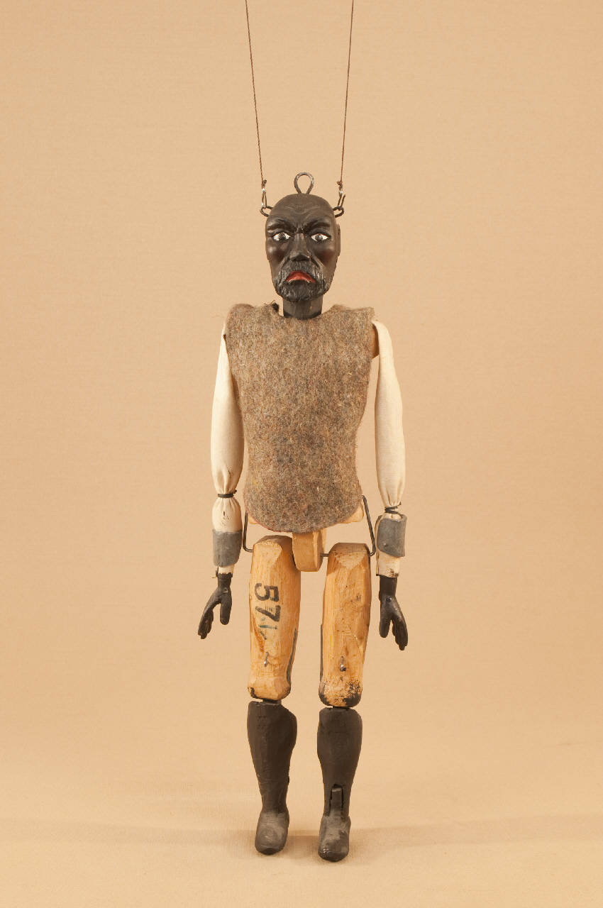 - NOTIZIE STORICO CRITICHE Anello sulla sommità della testa per il ferro utilizzato col sistema di movimento a pugnetto. Gambe, piedi, testa e mani sono state dipinte di marrone. Le mani in pioppo provengono dal materiale acquistato dallo scultore Ugliotti.