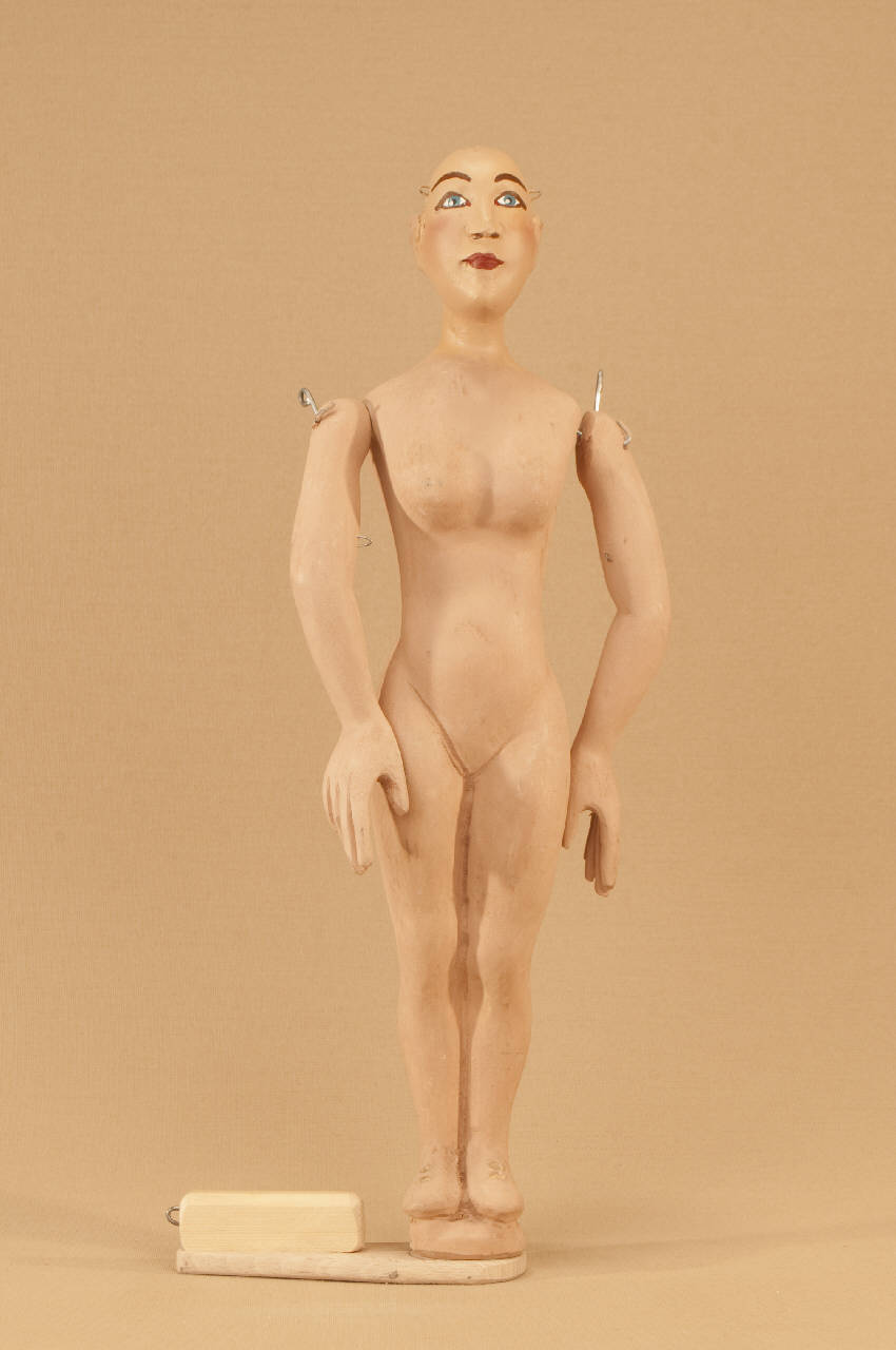 Marionetta in legno di tiglio che ha mobili solo le braccia.