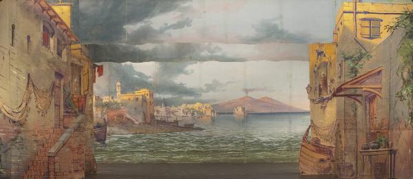 - NOTIZIE STORICO CRITICHE La scena è stata utilizzata negli anni '50 per un film interpretato da Luciano Taioli mentre nel '77 è stata utilizzata pern il film "La serenata di Pierrot" girato negli stabilimenti ICET di Cologno Monzese. L'intera scenografia fu realizzata per l'allestimento dello spettacolo "La serenata di Pierrot". Opera scritta ed allestita da Carlo II Colla nel 1900. Le scenografie furono affidate al pittore vercellese Francesco Bosso e i costumi furono realizzati dai laboratori della Compagnia. Soltanto negli anni venti, su bozzetti di Caramba, furono realizzati dalla Sartoria Ardovino di Milano i costumi delle quattro Pietre Preziose. Venne sostituita ad opera del pittore Achille Lualdi, anche la scena del fondo del mare, giudicata dall¿autore del balletto, troppo realistica. Tale scenografia di Leone Mens passò poi allo spettacolo Gerolamo Re degli Aviatori andato in scena nel 1933. Il personaggio di Pierrot, considerata l¿ambientazione poetica che l¿autore voleva dare allo spettacolo, si sostituiva al personaggio meno romantico di Pulcinella, malgrado il fatto che l¿ambientazione fosse connotata ai paesaggi di Napoli e a situazioni drammatiche tipiche dell¿ambiente meridionale.