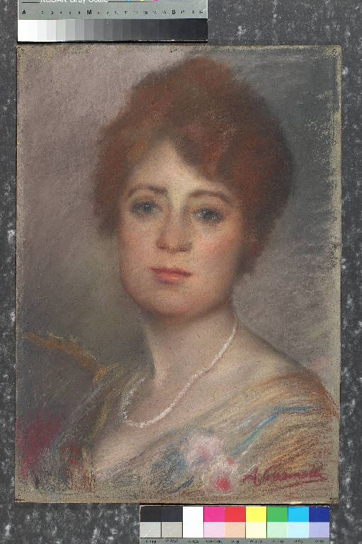 - NOTIZIE STORICO CRITICHE Nella realizzazione di un ritratto, Pasinetti non si discosta dalle procedure accademiche. Prima di affrontare le scelte sull' ambientazione e sulla postura, l'artista si concentra innanzitutto sui lineamenti del viso dei propri committenti, attraverso sedute di posa dal vivo condotte con veloci studi a carboncino e soprattutto a pastello. In questa fase anche il supporto fotografico diviene indispensabile al raggiungimento della verosimiglianza: è il caso dello studio per il ritratto della signora Vitali, speculare ma assai simile all'elegante fotografia rinvenuta tra le carte del pittore. Grazie alla stesura morbida e sfumata dei pastelli, la dolce silhouette in bianco e nero della donna pare rifiorire; per un attimo il lampo di un volto vivo si scorge negli occhi umidi e nell'incarnato setoso, discretamente velato dalla polvere di colore che il pittore diffonde con le dita quasi come un maquillage (Boifava, 2007, p. 82).