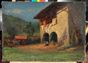 - NOTIZIE STORICO CRITICHE La luce proveniente da sinistra ravviva ed esalta la scena di lavoro che si sta compiendo nell'aia della cascina, dove alcuni personaggi sono intenti a sfogliare le pannocchie di granoturco. Il portico funge da quinta, ma è soprattutto il cuore della scena agreste che pulsa con il lavoro dei contadini. I panni stesi sul fienile, resi con colori caldi, costituiscono un segnale vivo di questo microcosmo in cui il tempo è scandito dalla natura e dove ciascuno riveste un ruolo specifico. Nella scena si legge l'affezione e la dedizione del pittore al mondo contadino: una visione che porta il pittore lontano dalla Milano chiassosa e che forse rievoca, con una punta di nostalgia, l'infanzia trascorsa in campagna (Boletti, 2007, p. 78).