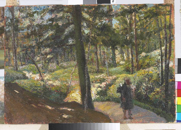 - NOTIZIE STORICO CRITICHE Il sottobosco presenta una tessitura cromatica fortemente descrittiva; gli arbusti concertano come un'orchestra di toni del verde che continuamente si richiamano. Fra questi si infilano colpi di pennello rossi e viola: tocchi minutissimi e cangianti, quasi impercettibili ma vitali per la luminosità e la profondità dell'opera (Boletti, 2007, p. 88).