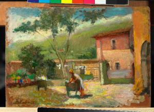 - NOTIZIE STORICO CRITICHE L'aia del cascinale è colta prima in un'impressione di piccolo formato e poi rimeditata su dimensioni maggiori (Inv. PPMTE00055), il bozzetto, che presenta tutta la dignità dell'opera compiuta, impiega in gran parte la spatola che assesta colpi di colore veloci e caldi, talvolta ancora intrisi di un impasto eterogeneo che moltiplica le vibrazioni di luce (Boletti, 2007, p. 118).