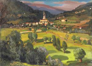 - NOTIZIE STORICO CRITICHE In villeggiatura, l'artista ritrae la vallata di Edolo che affiora con pennellate distese e il gruppo di case è risolto con rapide macchie di colore che aggiungono note di vivacità alle tonalità del verde.