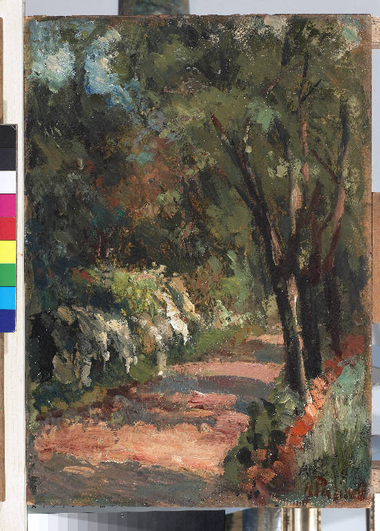 - NOTIZIE STORICO CRITICHE Le numerose riproduzioni fotografiche conservate presso l'archivio della Pinacoteca Pasinetti di Montichiari mostrano l'interesse dell'artista per il tema della rappresentazione pittorica di giardini. Le fotografie fermano sulla carta opere di cui si sono perse le tracce, il dipinto "Viale di Giardino", giunto sino a noi, è un'eccezione che testimonia la predilezione del pittore per il tema di parchi rigogliosi resi attraverso una pittura traboccante di colore.