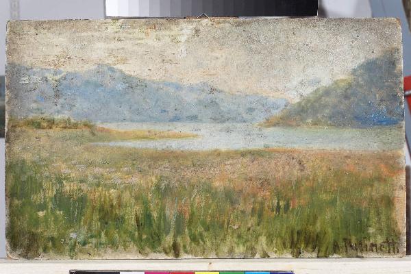 - NOTIZIE STORICO CRITICHE La pittura magra valorizza il paesaggio montano colto nelle prime ore della giornata sottolineandone la foschia mattutina.