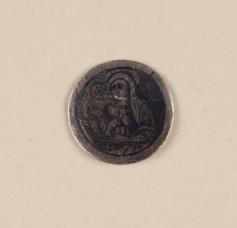 - NOTIZIE STORICO CRITICHE Il niello, conservato su un vassoio insieme ad altri pezzi (e contrassegnato dal n. 43), è inserito dal Malaspina nel suo Catalogo del 1824 tra quelli "de' bassi tempi", perlopiù di forma tonda e di soggetto sacro, che andavano originariamente a decorare oreficerie liturgiche.