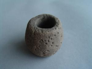 Vasetto miniatura fittile di forma globulare. Al suo interno le pareti sono dipinte di verde con un colore che appare coloniale o moderno.