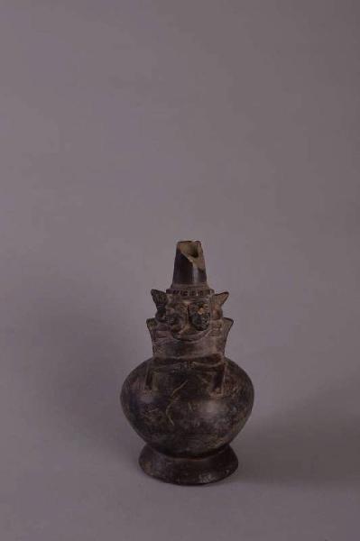 Bottiglia con due teste affrontate alla base del versatoio.