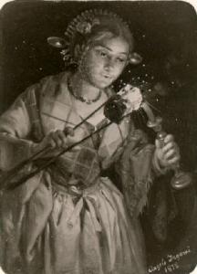 Figura femminile di contadina che accende una candela con un tizzone