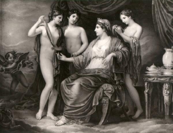 Al centro Venere, seduta su uno scranno, è attorniata dalle Grazie seminude in atteggiamenti vari; sullo sfondo un erote e una stella.