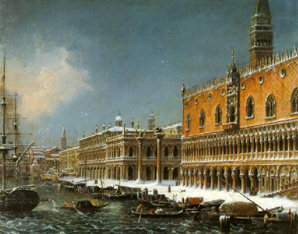 Veduta di riva degli Schiavoni sotto la neve