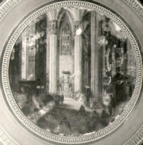 Veduta dell'interno del Duomo di Milano con i devoti.