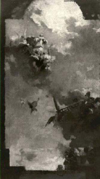 Entro una quadratura, il santo ascende tra uno stuolo d'angeli; in basso a destra, altri angeli sorreggono la graticola strumento del martirio.