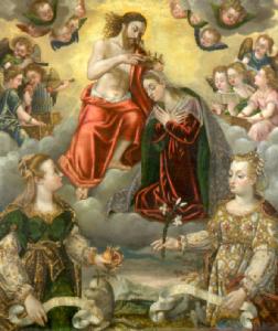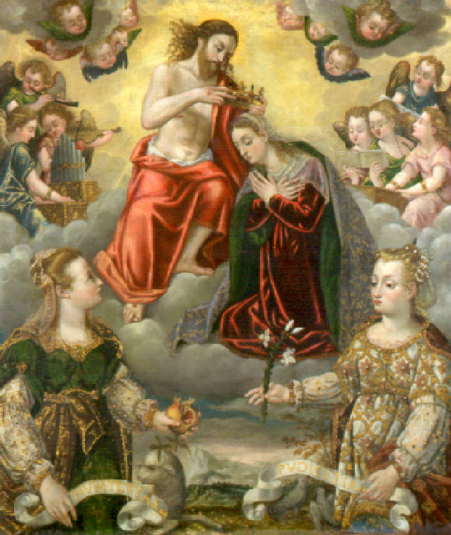 Incoronazione della Madonna tra angeli musicanti, Umiltà e Pudicizia