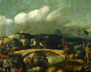 Battaglia di soldati presso un ponte