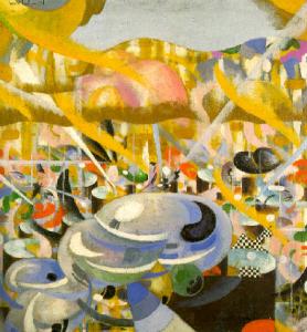 Campiture di colore e scomposizione dinamica di forme.
