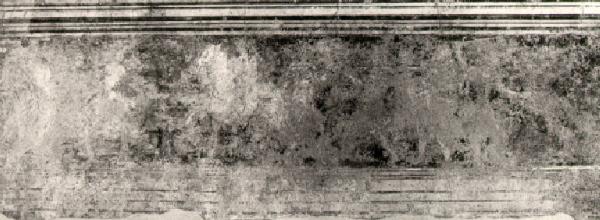 Scena di lotta fra cavalieri e uomini a piedi; a sinistra, tondo con figura. In alto e in basso finte modanature di marmo.