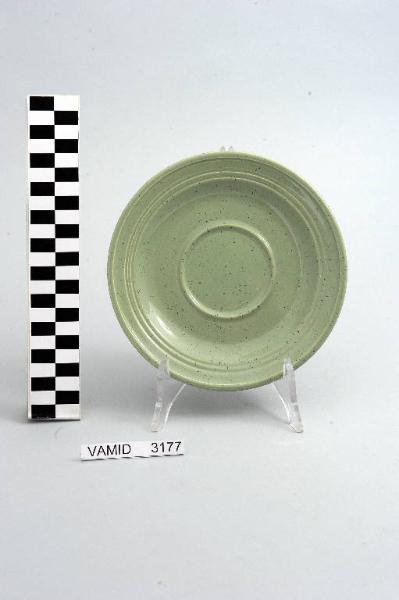 - NOTIZIE STORICO CRITICHE L'oggetto in esame, appartenente ad un servizio da tavola composto da quattro elementi (nn. inv. 3177...3233), si inserisce in un filone di stoviglie e vasellame di gusto corrente. Lo stile funzionale ed essenziale indica una datazione all'interno della seconda metà del Novecento. La ditta che lo ha prodotto ha realizzato nel 1998 la "Serie Fumo" (portapipe, posacenere, barattoli per tabacco) del designer Ambrogio Pozzi. Tipologicamente si lega ad un servizio da thè composto da sette elementi (nn. inv. 3172...3229).\nSi tratta di una tipologia prodotta, sempre nella linea gres, anche da altre manifatture come dimostrano il servizio da tavola (num. inv. 3176...3232), quello da colazione (num. inv. 3175, 3180), quello da thè (num. inv. 3174, 3179) e quello da caffè (num. inv. 3178, 3234) conservati presso il Midec.\nIl piatto fa parte di una donazione di privati al Museo.