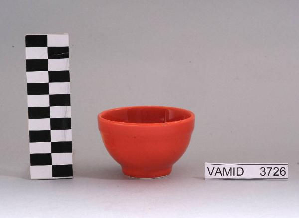 Ciotola a sezione circolare di colore rosso uniforme.