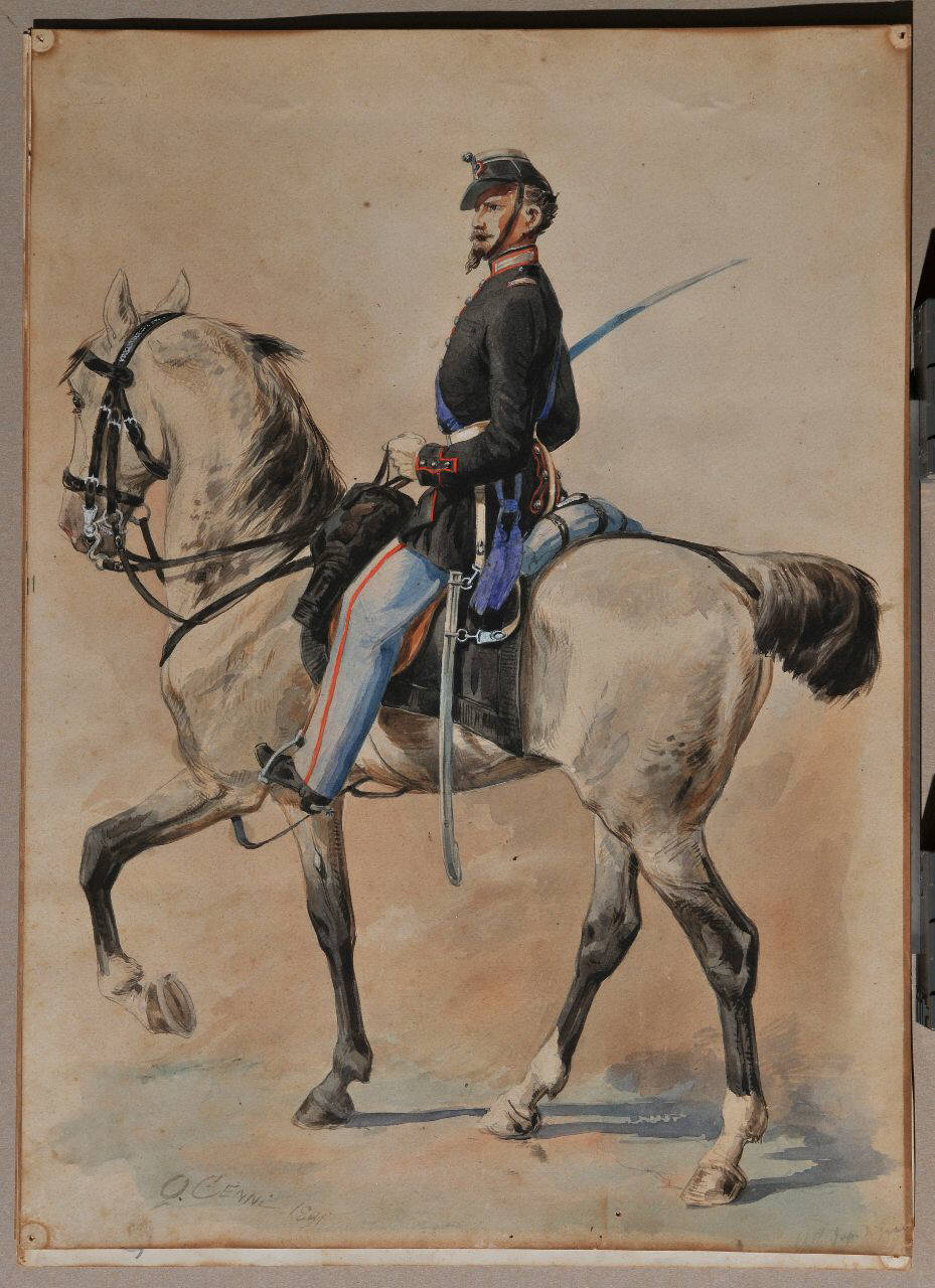 - NOTIZIE STORICO CRITICHE L'acquerello appartiene ad una raccolta di figurini militari nelle uniformi italiane. Le 20 tavole, firmate da Quinto Cenni, sonostate realizzate tra il 1889 ed il 1991.