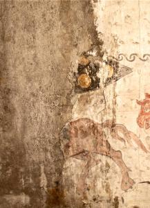 - NOTIZIE STORICO CRITICHE Il primo piano dell'ala meridionale del Broletto, che fu costruita nel secondo quarto del XIII secolo, era occupato da un salone molto grande dove si riuniva il Consiglio di Credenza della Città. Le dimensioni di questo spazio erano imponenti: era lungo quasi 52 metri, largo 14 metri e mezzo ed alto 9 m; era illuminato da grandi finestre polifore, il soffitto era a capriate lignee. Questo vasto ambiente restò in uso fino alla fine del XVI secolo quando fu suddiviso orizzontalmente: nella parte inferiore vennero create delle salette, in quella superiore, posta appena sotto il tetto, fu ricavata una soffitta adibita a vari usi fra cui quello di Archivio Storico Civico. Tra il 1944 e il 1946 i documenti e i materiali dell'Archivio Storico Civico vennero spostati e sulle pareti settentrionale e meridionale del sottotetto fu scoperta una decorazione ad affresco piuttosto vasta che, in epoca medievale, ornava le pareti del Salone del Consiglio della Città di Brescia. Nel 1946 i dipinti sono stati discialbati, ripuliti e consolidati dal restauratore Bertelli che mette in luce due strati sovrapposti di affreschi. Il primo, pertinente alla seconda metà del XIII secolo, raffigura una teoria di cavalieri incatenati che escono dalle porte della città facendo riferimento ai diversi provvedimenti presi dal Comune bresciano per allontanare i nobili di parte ghibellina della città nell'ultimo quarto del XIII secolo. Il secondo strato della decorazione pittorica, invece, è databile a qualche decennio più tardi e comprende la raffigurazione della cosiddetta "Pace di Bagnolo Mella" che, nel 1298, pose fine alle lotte civili fra guelfi e ghibellini stabilendo su Brescia la signoria del Vescovo Berardo Maggi e vari dipinti di soggetto sacro che, nel 1946, vennero strappati dalle pareti per mettere in luce la sfilata dei cavalieri ed oggi sono conservati nella Pinacoteca Civica.