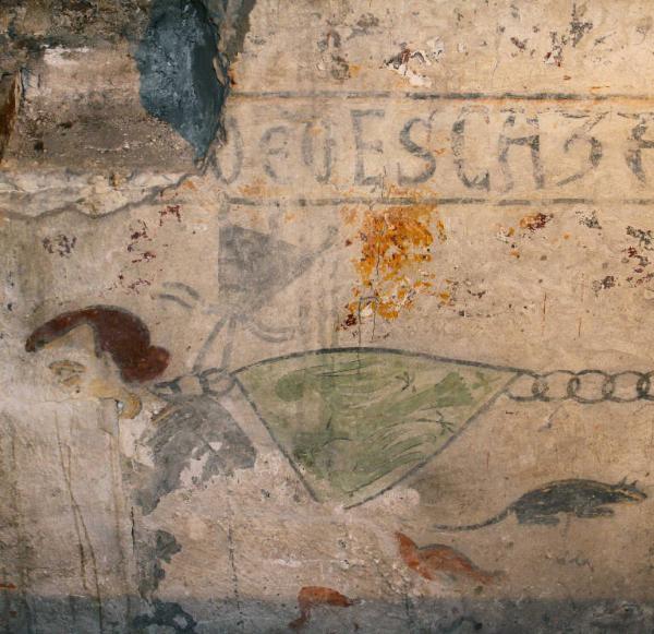 - NOTIZIE STORICO CRITICHE Il primo piano dell'ala meridionale del Broletto, che fu costruita nel secondo quarto del XIII secolo, era occupato da un salone molto grande dove si riuniva il Consiglio di Credenza della Città. Le dimensioni di questo spazio erano imponenti: era lungo quasi 52 metri, largo 14 metri e mezzo ed alto 9 m; era illuminato da grandi finestre polifore, il soffitto era a capriate lignee. Questo vasto ambiente restò in uso fino alla fine del XVI secolo quando fu suddiviso orizzontalmente: nella parte inferiore vennero create delle salette, in quella superiore, posta appena sotto il tetto, fu ricavata una soffitta adibita a vari usi fra cui quello di Archivio Storico Civico. Tra il 1944 e il 1946 i documenti e i materiali dell'Archivio Storico Civico vennero spostati e sulle pareti settentrionale e meridionale del sottotetto fu scoperta una decorazione ad affresco piuttosto vasta che, in epoca medievale, ornava le pareti del Salone del Consiglio della Città di Brescia. Nel 1946 i dipinti sono stati discialbati, ripuliti e consolidati dal restauratore Bertelli che mette in luce due strati sovrapposti di affreschi. Il primo, pertinente alla seconda metà del XIII secolo, raffigura una teoria di cavalieri incatenati che escono dalle porte della città facendo riferimento ai diversi provvedimenti presi dal Comune bresciano per allontanare i nobili di parte ghibellina della città nell'ultimo quarto del XIII secolo. Il secondo strato della decorazione pittorica, invece, è databile a qualche decennio più tardi e comprende la raffigurazione della cosiddetta "Pace di Bagnolo Mella" che, nel 1298, pose fine alle lotte civili fra guelfi e ghibellini stabilendo su Brescia la signoria del Vescovo Berardo Maggi e vari dipinti di soggetto sacro che, nel 1946, vennero strappati dalle pareti per mettere in luce la sfilata dei cavalieri ed oggi sono conservati nella Pinacoteca Civica.