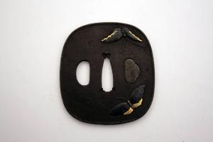Elsa di spada giapponese di forma ovale con bordo leggermente rialzato, con i tre fori canonici, quello centrale (nakagoana) per il codolo, il foro di sinistra (kozuka hitsuana) per il coltellino, e quello di destra (kogai hitsuana) per lo spillone. Quest'ultimo è stato riempito con una piastrina di ottone patinato, shakudo. Sono rappresentate due farfalle in forte rilievo.