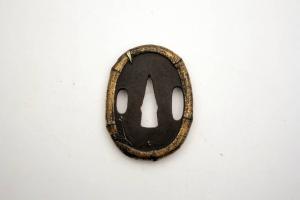 - NOTIZIE STORICO CRITICHE In Giappone l'elsa è detta "tsuba". La sua funzione primaria è quella di fare in modo che la mano di chi impugna la spada non finisca sulla propria lama, oltre a bilanciare la spada e a proteggere la mano dalla lama dell'avversario.\nIndirettamente, gli tsuba servivano anche a mostrare lo stato sociale e il gusto personale e, come per altri oggetti d'uso, divennero presto un mezzo d'espressione artistica.\nDal XIX secolo, quando la spada e i suoi accessori divennero più decorativi che funzionali, e ancor più dal 1878, a seguito della proibizione di portare la spada, gli tsuba erano prodotti come oggetti da collezione favoriti dagli occidentali, che li vedevano come una originale e nuova forma d'arte. Molti di questi oggetti raggiunsero infatti l'Europa già nell'Ottocento.\n\nLo shakudo è una lega di rame e oro con al 94-99%, oro all' 1-6%, una minima quantità di argento, e tracce di antimonio, arsenico e piombo. Esso era patinato con bagni in soluzione acida per assumere un colore nero violastro. Il signore feudale del XVI secolo Toyotomi Hideyoshi legò il colore di questa lega all'imagine della pioggia sulle ali del corvo.