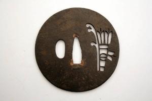 - NOTIZIE STORICO CRITICHE In Giappone l'elsa è detta "tsuba". La sua funzione primaria è quella di fare in modo che la mano di chi impugna la spada non finisca sulla propria lama, oltre a bilanciare la spada e a proteggere la mano dalla lama dell'avversario.\nIndirettamente, gli tsuba servivano anche a mostrare lo stato sociale e il gusto personale e, come per altri oggetti d'uso, divennero presto un mezzo d'espressione artistica.\nDal XIX secolo, quando la spada e i suoi accessori divennero più decorativi che funzionali, e ancor più dal 1878, a seguito della proibizione di portare la spada, gli tsuba erano prodotti come oggetti da collezione favoriti dagli occidentali, che li vedevano come una originale e nuova forma d'arte. Molti di questi oggetti raggiunsero infatti l'Europa già nell'Ottocento.\n\nDegli spessori di rame sono stati applicati ai vertici del nakagoana per fermare perfettamente l'elsa sulla lama.