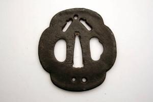 - NOTIZIE STORICO CRITICHE In Giappone l'elsa è detta "tsuba". La sua funzione primaria è quella di fare in modo che la mano di chi impugna la spada non finisca sulla propria lama, oltre a bilanciare la spada e a proteggere la mano dalla lama dell'avversario.\nIndirettamente, gli tsuba servivano anche a mostrare lo stato sociale e il gusto personale e, come per altri oggetti d'uso, divennero presto un mezzo d'espressione artistica.\nDal XIX secolo, quando la spada e i suoi accessori divennero più decorativi che funzionali, e ancor più dal 1878, a seguito della proibizione di portare la spada, gli tsuba erano prodotti come oggetti da collezione favoriti dagli occidentali, che li vedevano come una originale e nuova forma d'arte. Molti di questi oggetti raggiunsero infatti l'Europa già nell'Ottocento.\n\nQuesto tsuba ha anche i due fori, udenukiana, attraverso i quali veniva fatta passare una corda per legare lo tsuba al fodero in modo da non perdere la spada in occasione di lunghi spostamenti.\nLo stile è definito da Ogasawara "degli spadai".