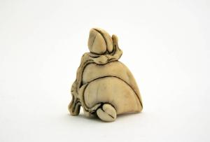 - NOTIZIE STORICO CRITICHE Il netsuke è un accessorio dell'abito tradizionale giapponese che permetteva di sospendere alla cintura una serie di oggetti quali l'astuccio per sigillo o per medicinali (inro), la borsa da tabacco e la pipa, il completo da scrittura (yatate), oppure il borsello o la bottiglietta per il profumo. Questi oggetti erano detti "koshisage" o "sagemono", cose sospese - ai fianchi. Essi erano legati a un cordoncino che passava per una piccola perla, lo "ojime", e infine al netsuke che fungeva da contrappeso e andava a fermarsi alla cintura. Il netsuke nasce infatti per permettere di sfilare gli oggetti dalla cintura senza doverli slegare e legare continuamente.\n\nQuesto frutto sembra essere una pesca, simbolo cinese di immortalità che normalmente è associato ad alcune divinità taoiste. La pesca, in giapponese "momo", era anche legata alla leggenda di Momotaro, nella quale si narra di un bambino trovato dentro una grande pesca da una anziana coppia senza figli.