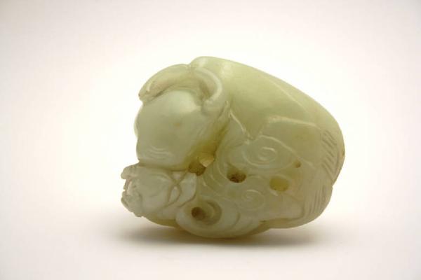- NOTIZIE STORICO CRITICHE Il bufalo o bue (in Cina il nome "niu" è il medesimo per entrambi) è un animale fondamentale per l'economia agricola cinese, dove è impiegato peri l lavoro dei campi. L'animale è così divenuto simbolo di primavera, di abbondanza e fertilità.\nLa coppia piccolo - adulto, che si può incontrare anche in altri manufatti di questa collezione, ha lo scopo di raddoppiare e rafforzare il potere di buon auspicio. In questo caso l'oggetto poteva essere un dono per una giovane coppia e per le piccole dimensioni poteva fungere da ferma carte. Le linee curve e delicate, e l'aspetto tondeggiante della pietra sono tipiche di uno stile in voga durante il periodo Ming.