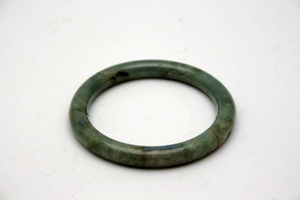 - NOTIZIE STORICO CRITICHE Per giada si intendono principalmente nefrite e giadeite, pietre estremamente dure che si riteneva avessero poteri speciali. Dall'VIII secolo a.C. la giada era utilizzata per ricoprire i corpi di principi e nobili poiché si credeva che la preziosa pietra conservasse il cadavere.\nIn Asia Orientale la nefrite era usata in forma di pendaglio per decorare le corone degli imperatori e delle loro consorti, e per creare collane e amuleti di vario tipo. Fin dai tempi più antichi questa pietra ebbe dunque un ruolo fondamentale per la creazione di gioielli che stabilissero lo stato sociale della persona.\n\nIn questo caso la preziosa pietra è del tipo "spinacio", proveniente dalle aree siberiane. Questo braccialetto, semplice e perfettamente circolare è molto comune al giorno d'oggi come oggetto da regalo.
