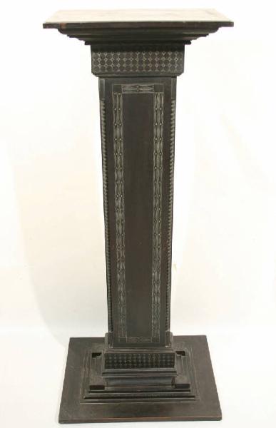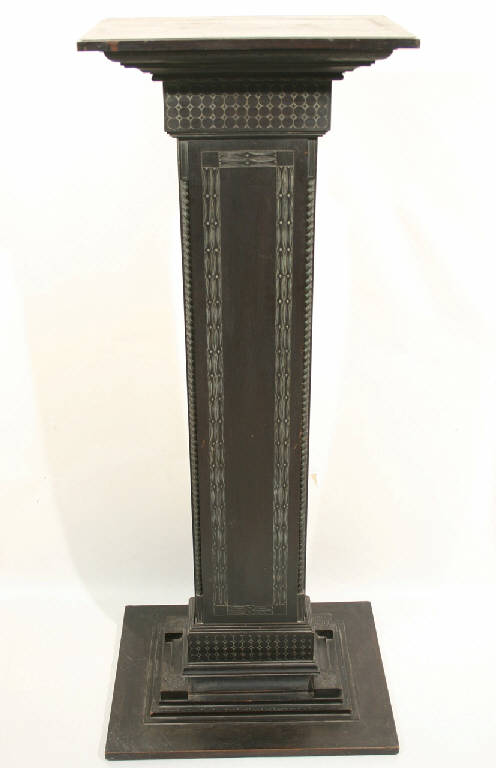 Base in legno per scultura decorata con motivi geometrici a intaglio