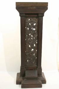 Base in legno di noce per scultura decorata con motivi floreali a intaglio