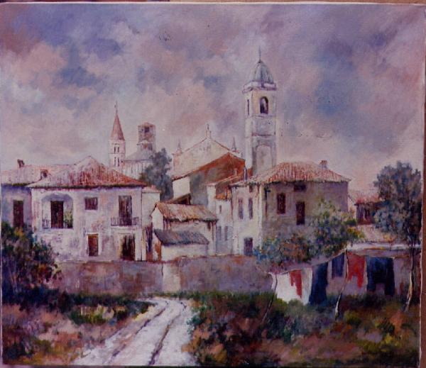 San Pietro di Borgo Mattina. veduta del paese di Soncino con chiesa di San Pietro Apostolo, in zona Borgo Mattina