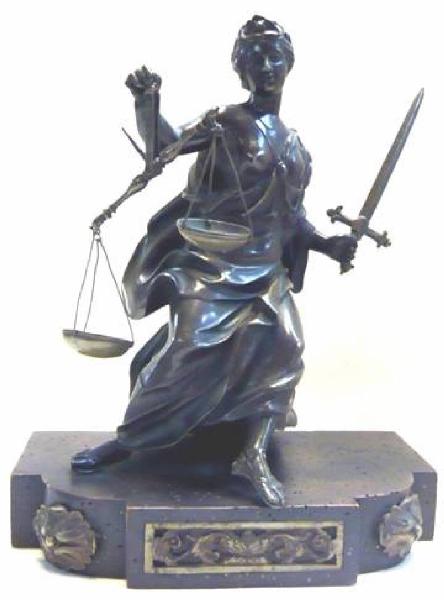Scultura raffigurante l'allegoria della Giustizia. È seduta e impugna nella mano sinistra una spada e nella destra una bilancia a bracci, compenso una leggera torsione del busto sulla sinistra.