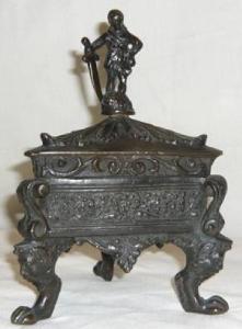 calamaio con vaschetta a base triangolare, sul coperchio: David con la testa di Golia.
