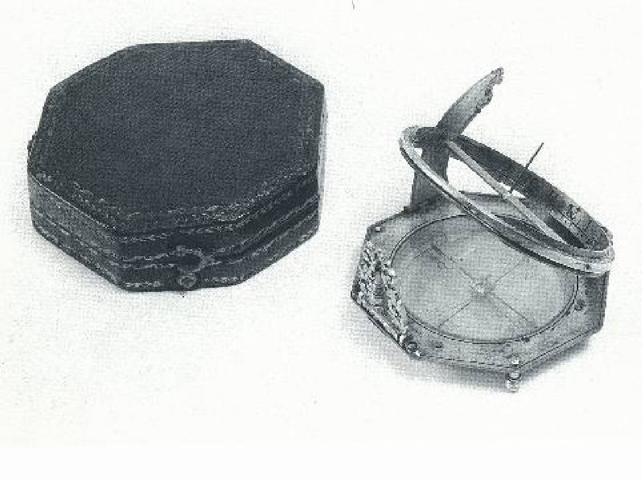 Quadrante equinoziale in ottone di forma ottagonale. Forse il quadrante della bussola è realizzato in platino. Reca una firma.