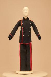 - NOTIZIE STORICO CRITICHE Il costume si completa con collo militare, polsi e accessori di corredo vari.\nGli spettacoli della Compagnia Carlo Colla che trattano il tema del brigantaggio nell¿Italia settentrionale e meridionale, erano in repertorio già dal 1863, come si evince dal libro mastro 1863-1879. I titoli erano "Majno della Spinetta", "I misteri del brigantaggio" e "I briganti della Callabria"(sic). Nel 1904 quest¿ultimo diventa "Caruso e i suoi briganti". Da questo spettacolo traggono origine nel 1907 l¿azione coreografica in 7 quadri "L¿umile eroe" con la musica di Corrado Gualtieri e nel 1918 "L¿asino e il Curato", commedia in due atti, entrambe a firma di Carlo II Colla.\nIl ballo "storico patriottico" "L¿umile eroe" rientra nei progetti di informazione sugli episodi storici che caratterizzarono la seconda metà dell¿800, tema trattato da tutte le compagnie marionettistiche di giro. Ad esso si affiancava l¿indagine sui fenomeni di trasformazione sociale che seguirono l¿età risorgimentale fra cui trova spazio il fenomeno del brigantaggio nell¿Italia settentrionale e meridionale. L¿ultima replica del ballo al Teatro Gerolamo di Milano risale al 1954.